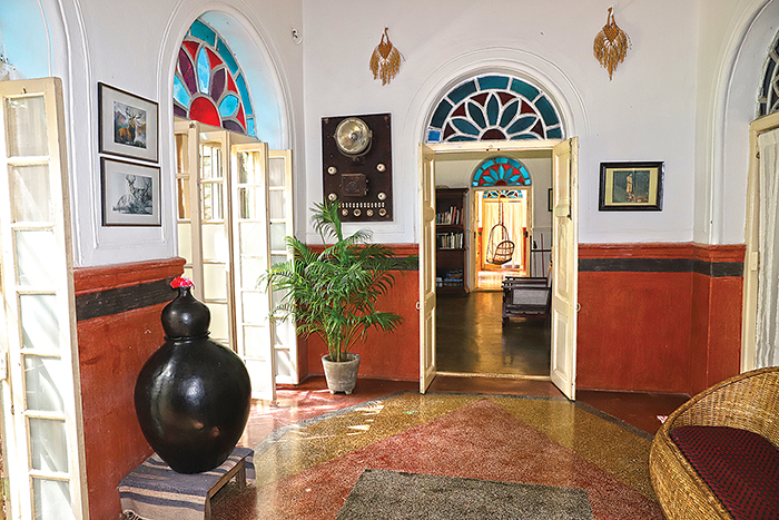 Replicating the European style of architecture, Kila Dalijoda is a unique mansion built in laterite stone. The arched doors and windows accentuated with coloured glass panes are charming. The mansion boasts some elegant period furniture, artefacts and fittings such as a water softening machine, search light for hunting, watering system and self-generating electricity.